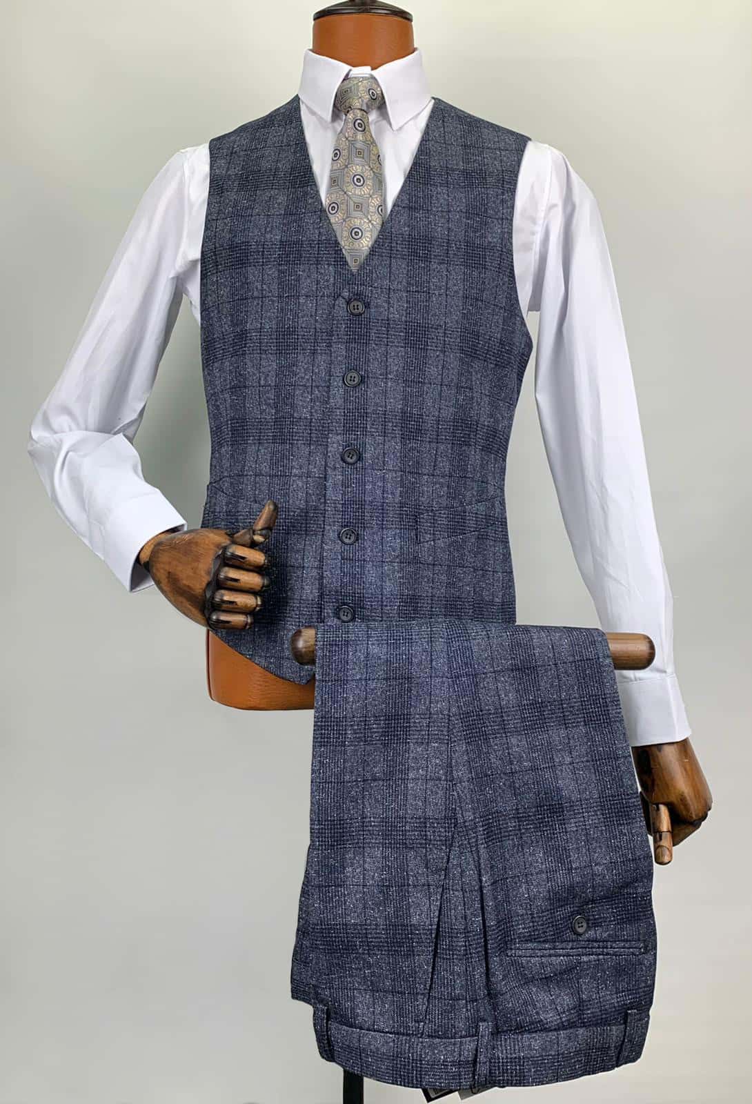 AC5253A5-韓款灰藍格修身馬甲 $299