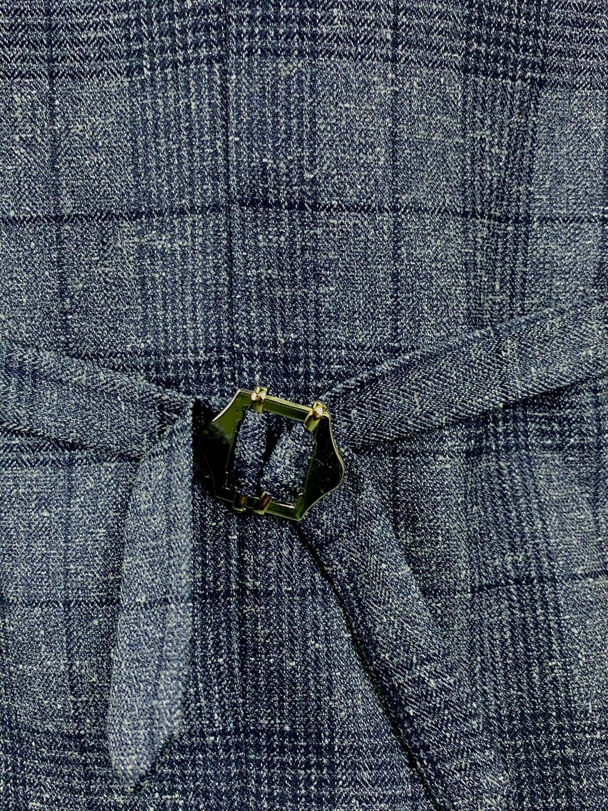 韓款灰藍格修身套裝   $750